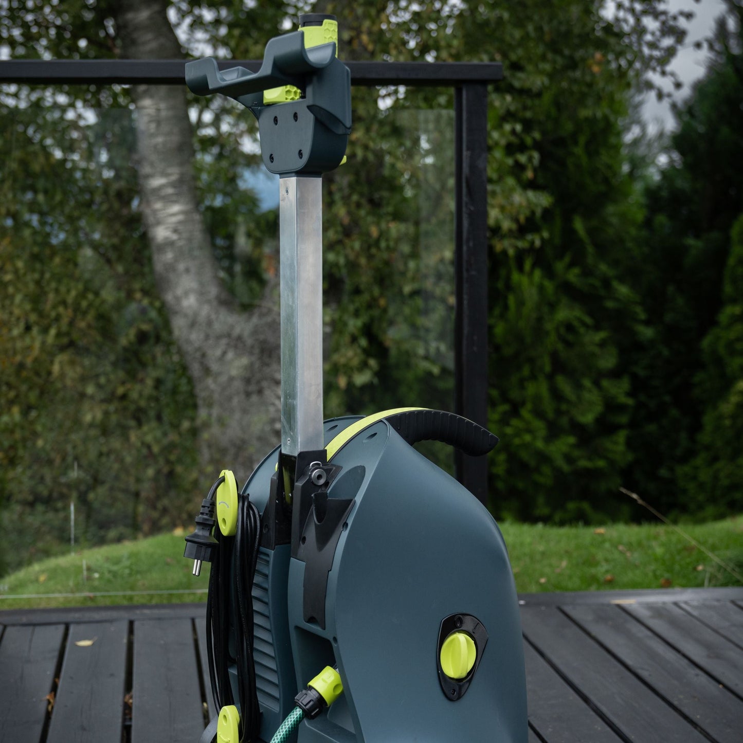 - 12 Metre Hose: An integrated hose reel and 12 meters of flexible high-pressure hose